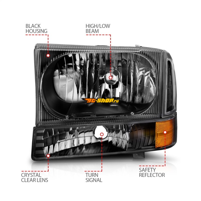 ОписаниеANZO 2000-2004 Ford Excursion Crystal Headlights Black