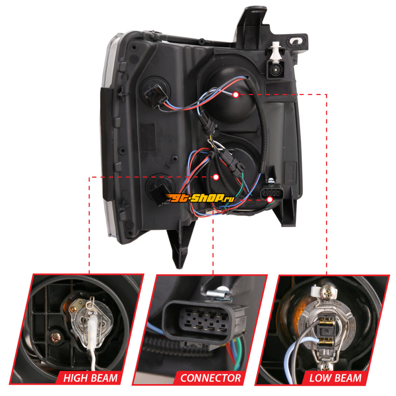 ОписаниеANZO 07-13 Chevrolet Silverado 1500 Plank Style Projector Headlights Black w/ Amber