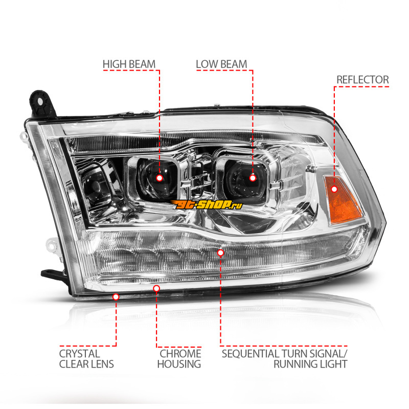 ОписаниеANZO 09-19 Dodge RAM 1500 / 10-18 2500/3500 LED Proj Headlights SeqSig Chrome - Pair