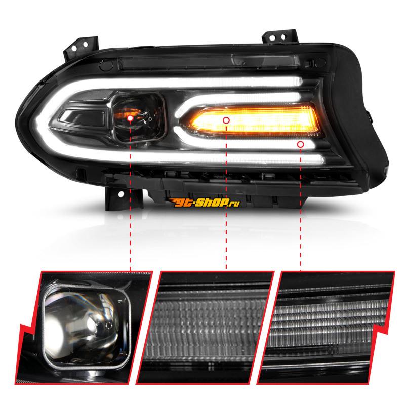 ОписаниеANZO 2015-2018 Dodge Charger Projector Headlights Plank Style Black