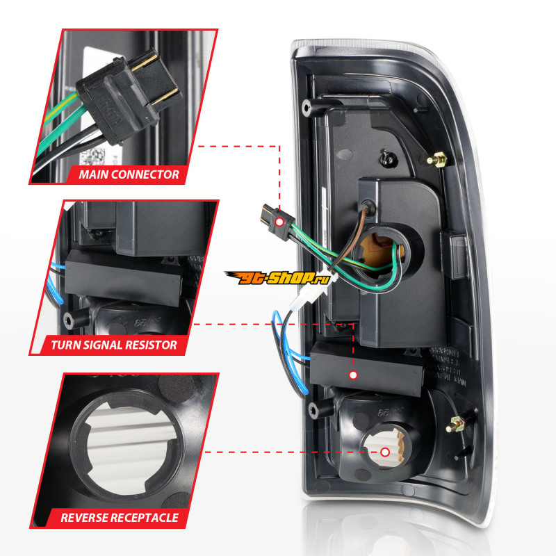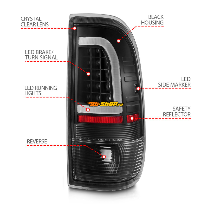 ОписаниеANZO 1997-2003 Ford F-150 LED Tail Lights w/ Light Bar Black Housing Clear Lens