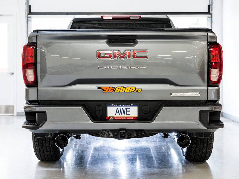 ОписаниеAWE Tuning 4th Gen GM 1500 5.3L 0FG Catback Split Rear Exit (Flat Bumper) - Quad Chrome Tips