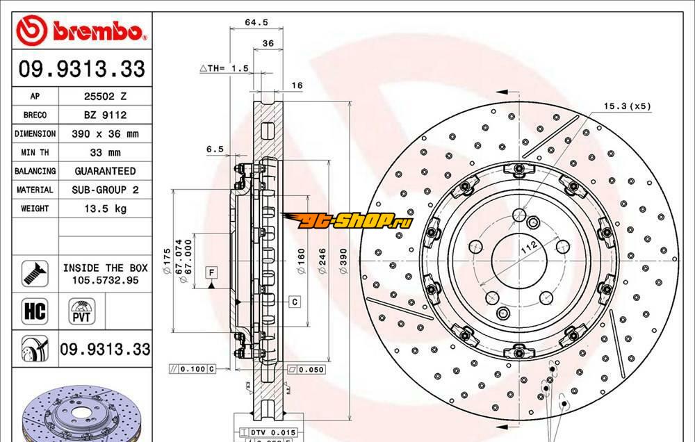 | BREMBO 09931333 Спецификация | |