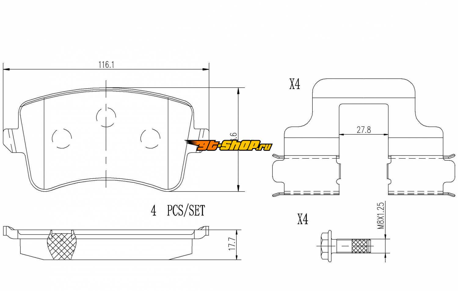 Колодки тормозные для легкового автомобиля, комплект