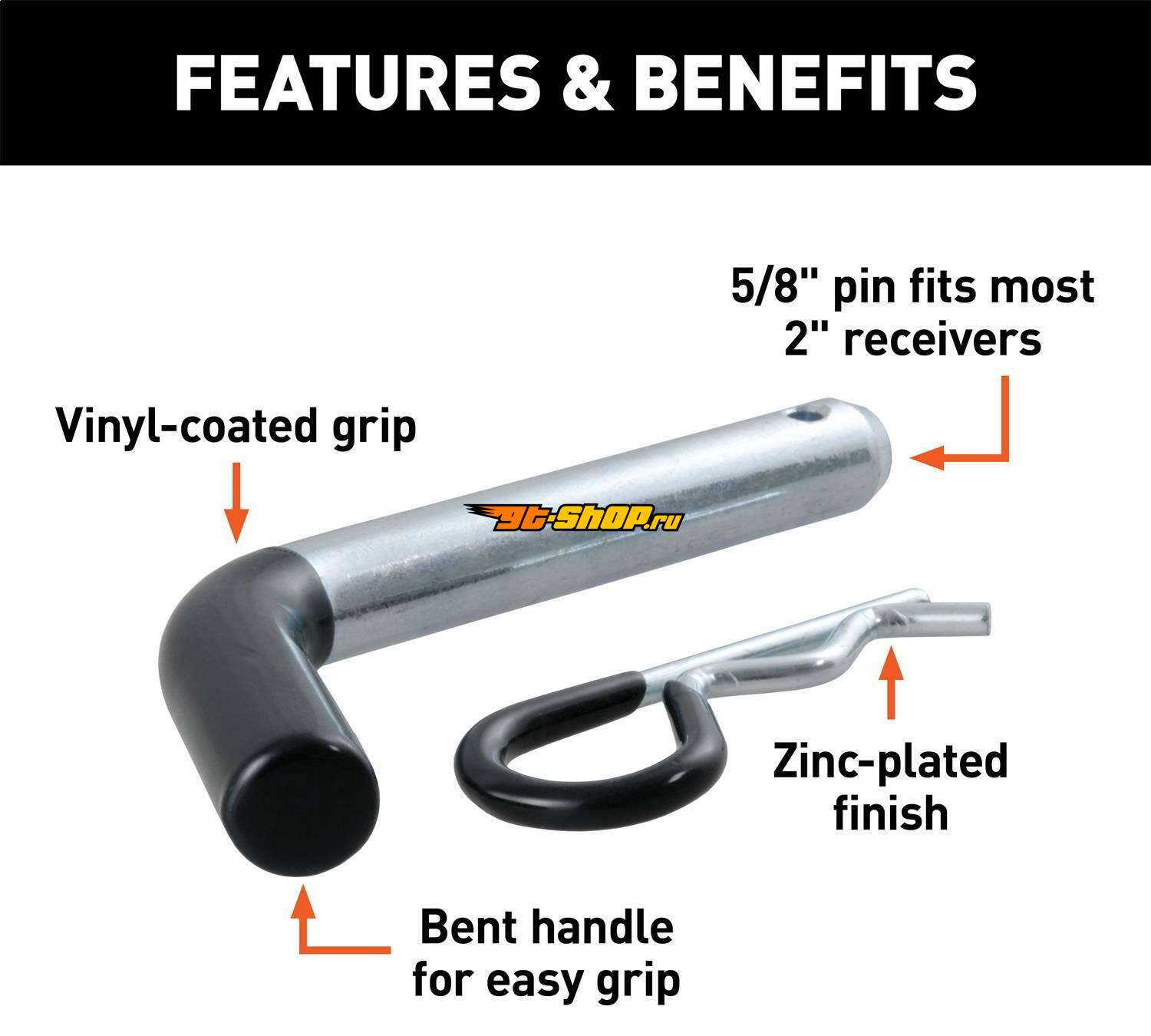 Curt 5/8in Hitch Pin (2in Receiver Zinc w/Rubber Grip)