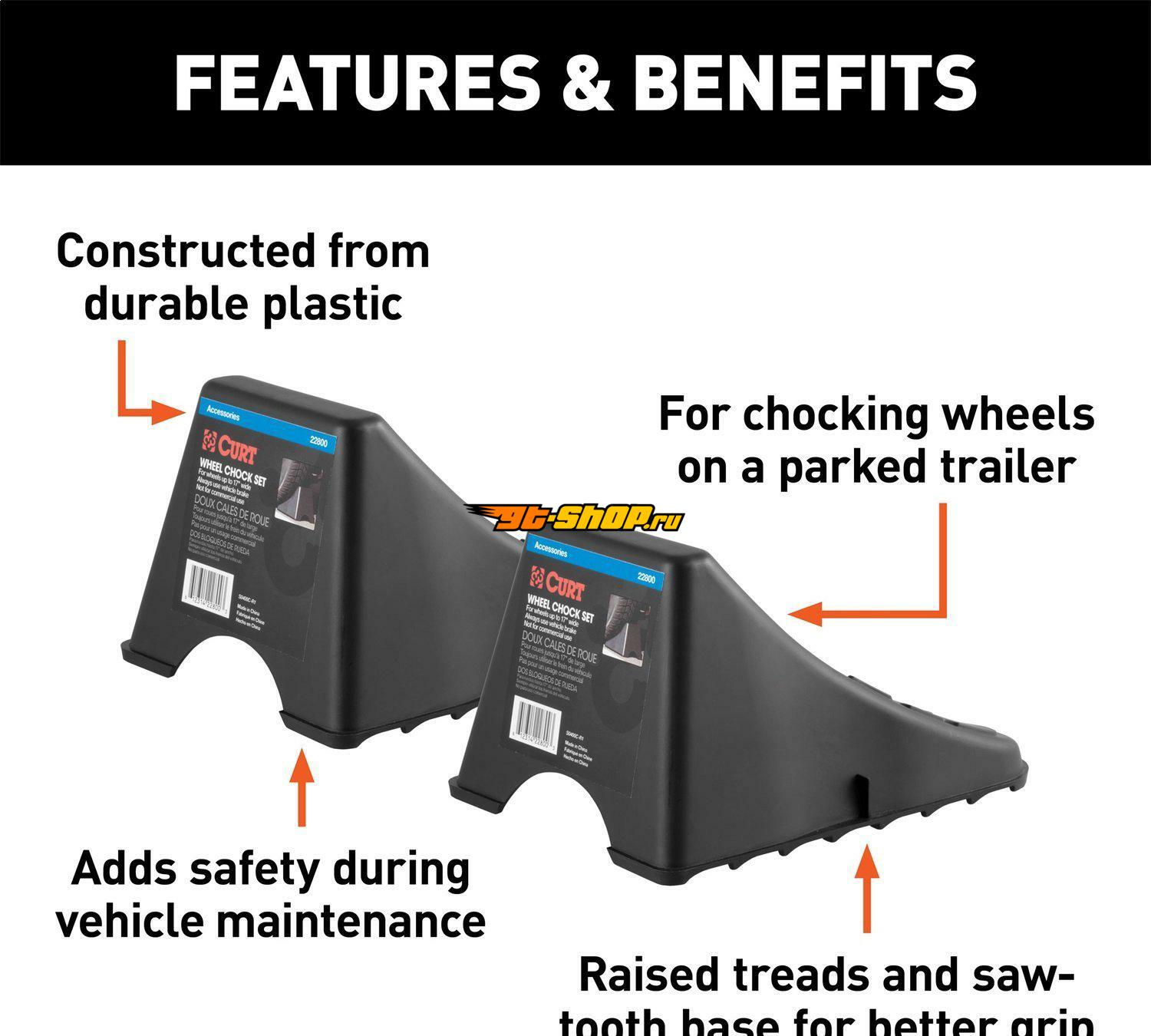 Curt Wheel Chock Set (Up to 17in Wide Wheels)