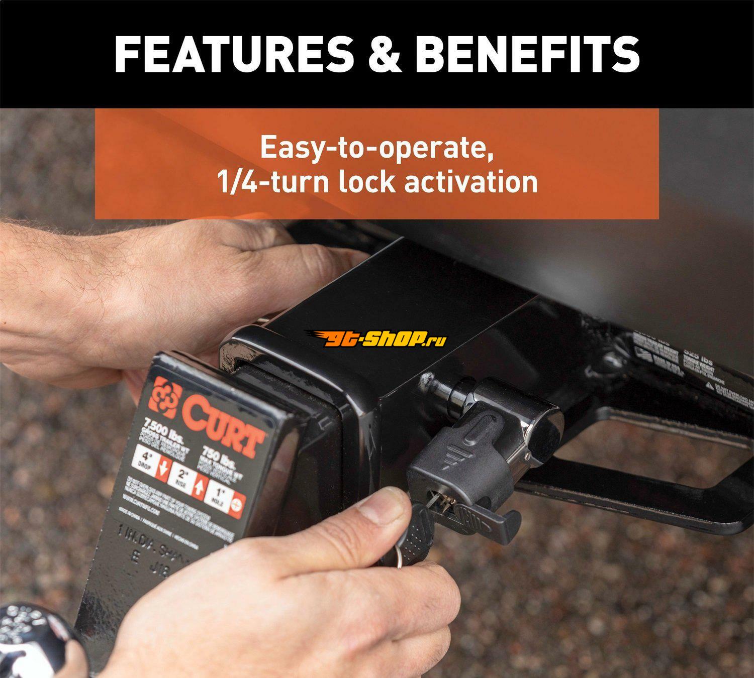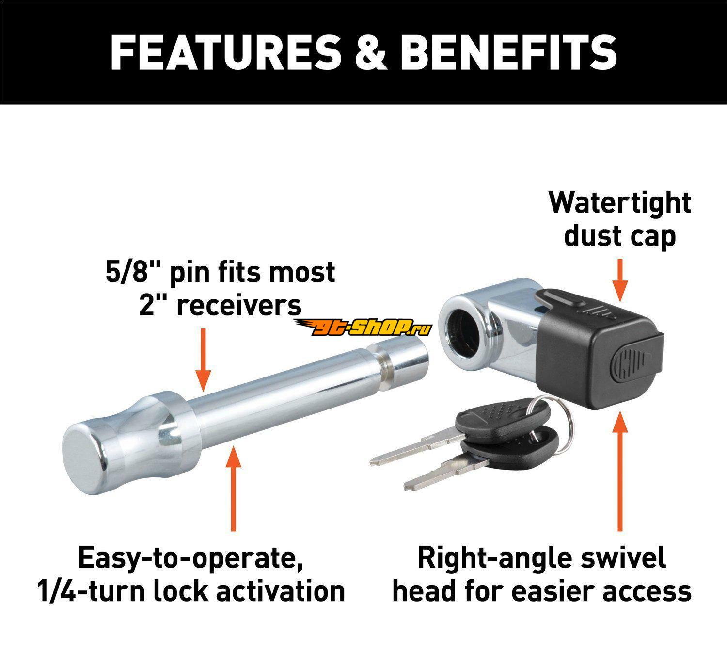 Curt 5/8in Hitch Lock (2in Receiver Right-Angle Chrome)