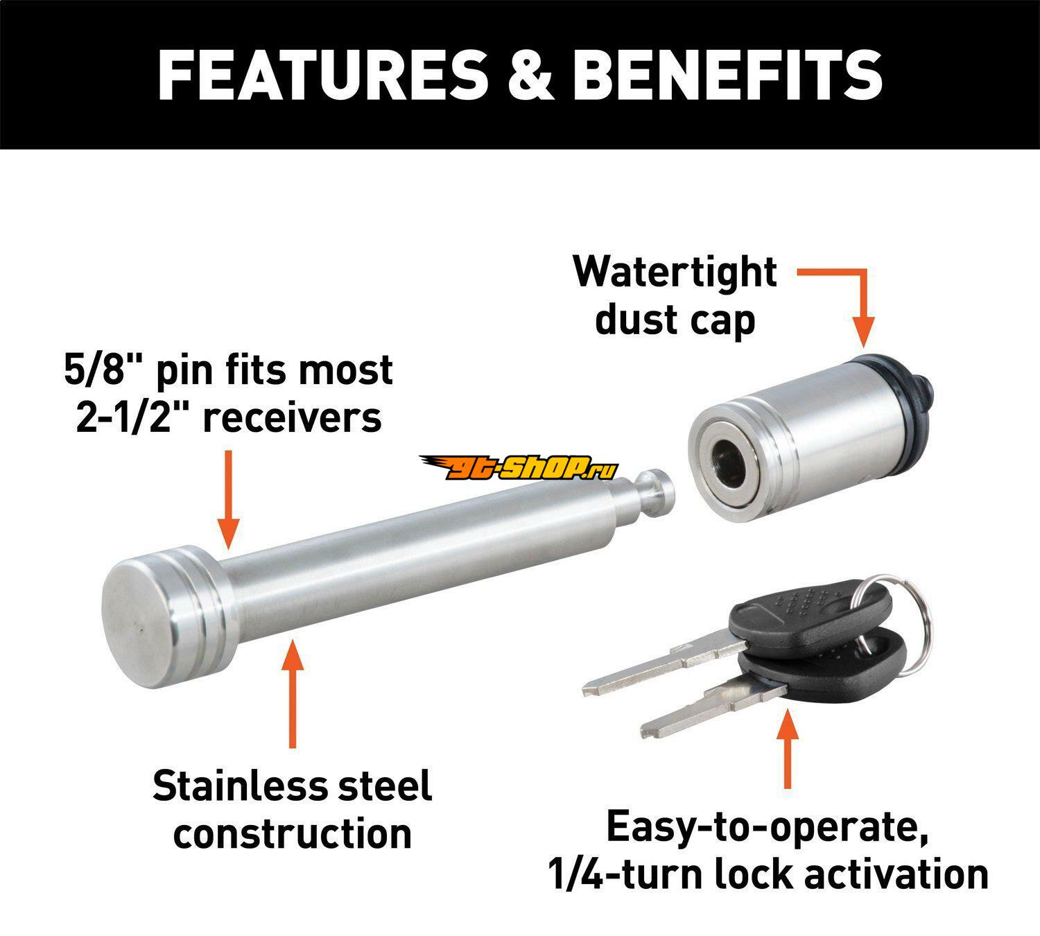 Curt 5/8in Hitch Lock (2in or 2-1/2in Receiver Barbell Stainless)