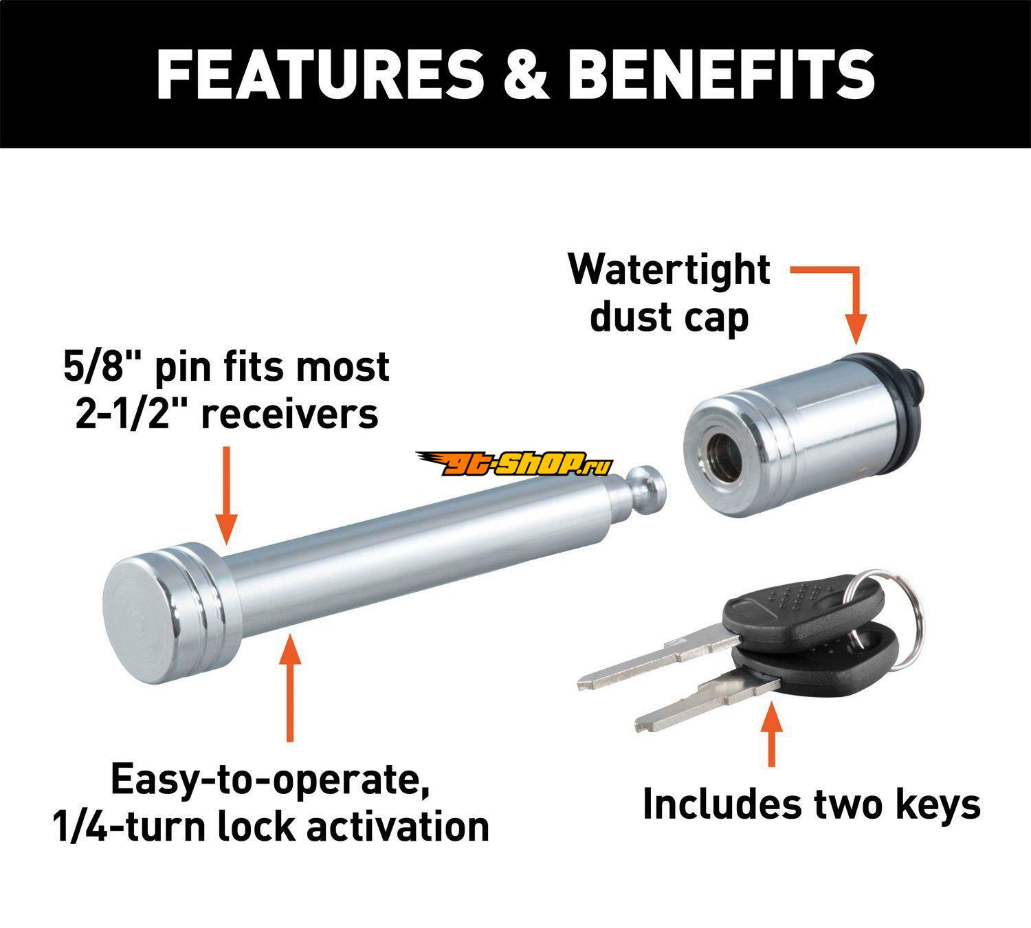 Curt 5/8in Hitch Lock (2in or 2-1/2in Receiver Barbell Chrome)