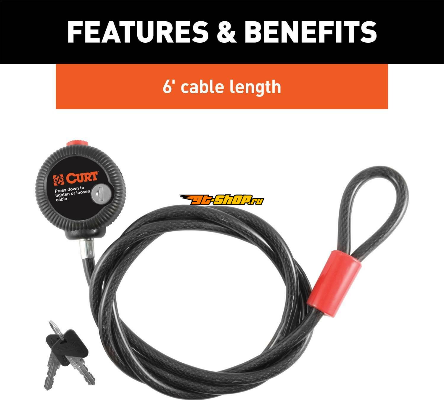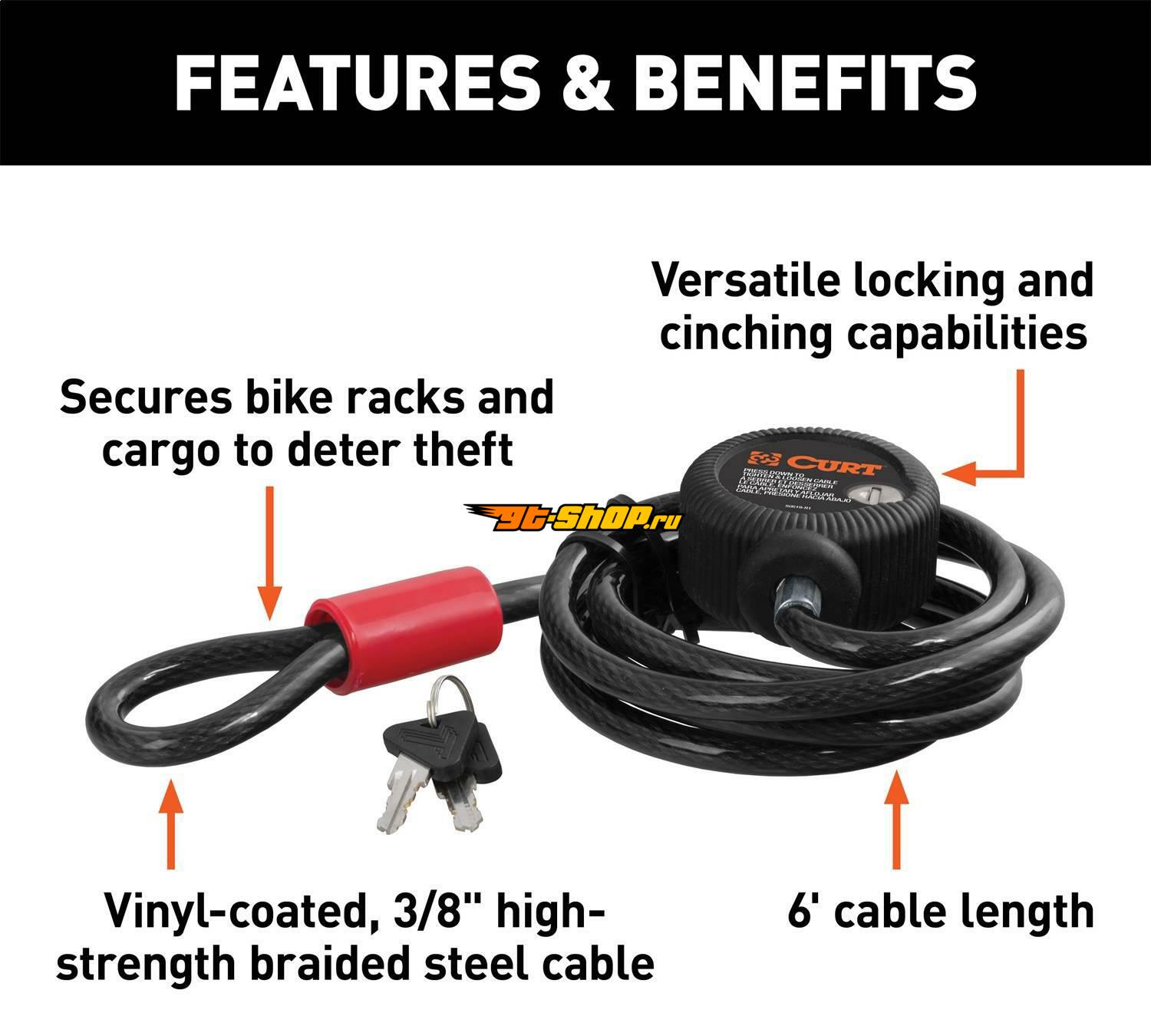 Curt Multi-Use Cable Lock (6ft x 3/8in Cable Vinyl-Coated Braided Steel)