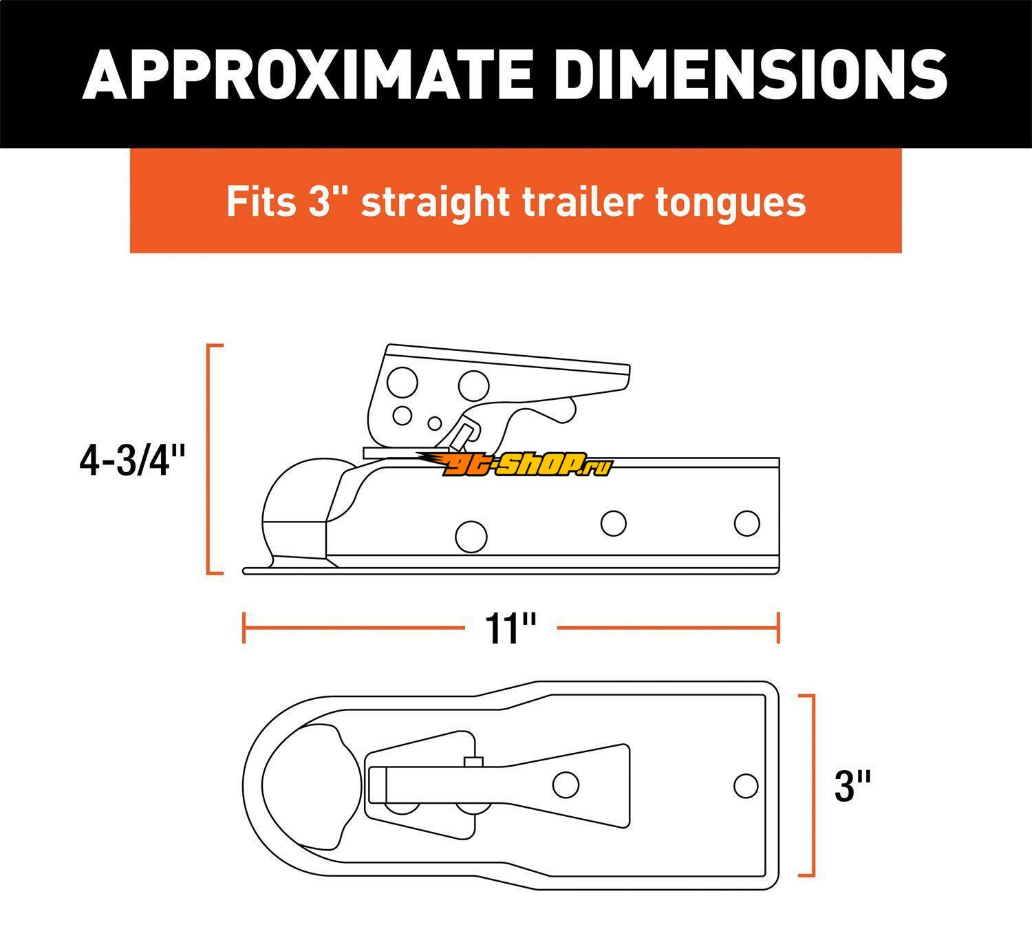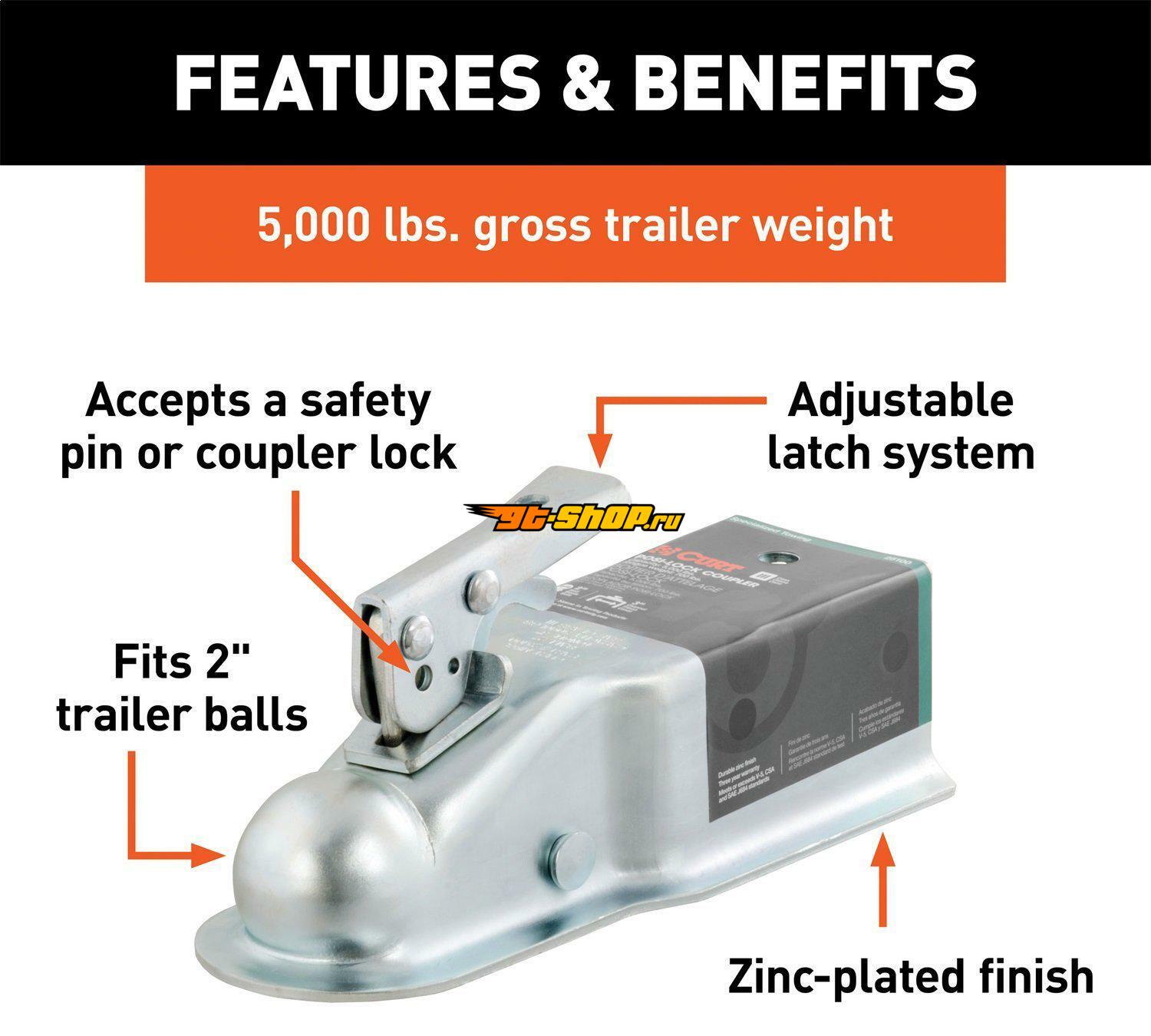 Curt 2in Straight-Tongue Coupler w/Posi-Lock (3in Channel 5000lbs Zinc)