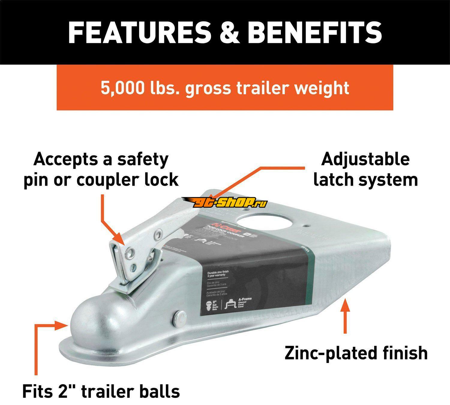 Curt 2in A-Frame Coupler w/Posi-Lock (5000lbs Zinc)