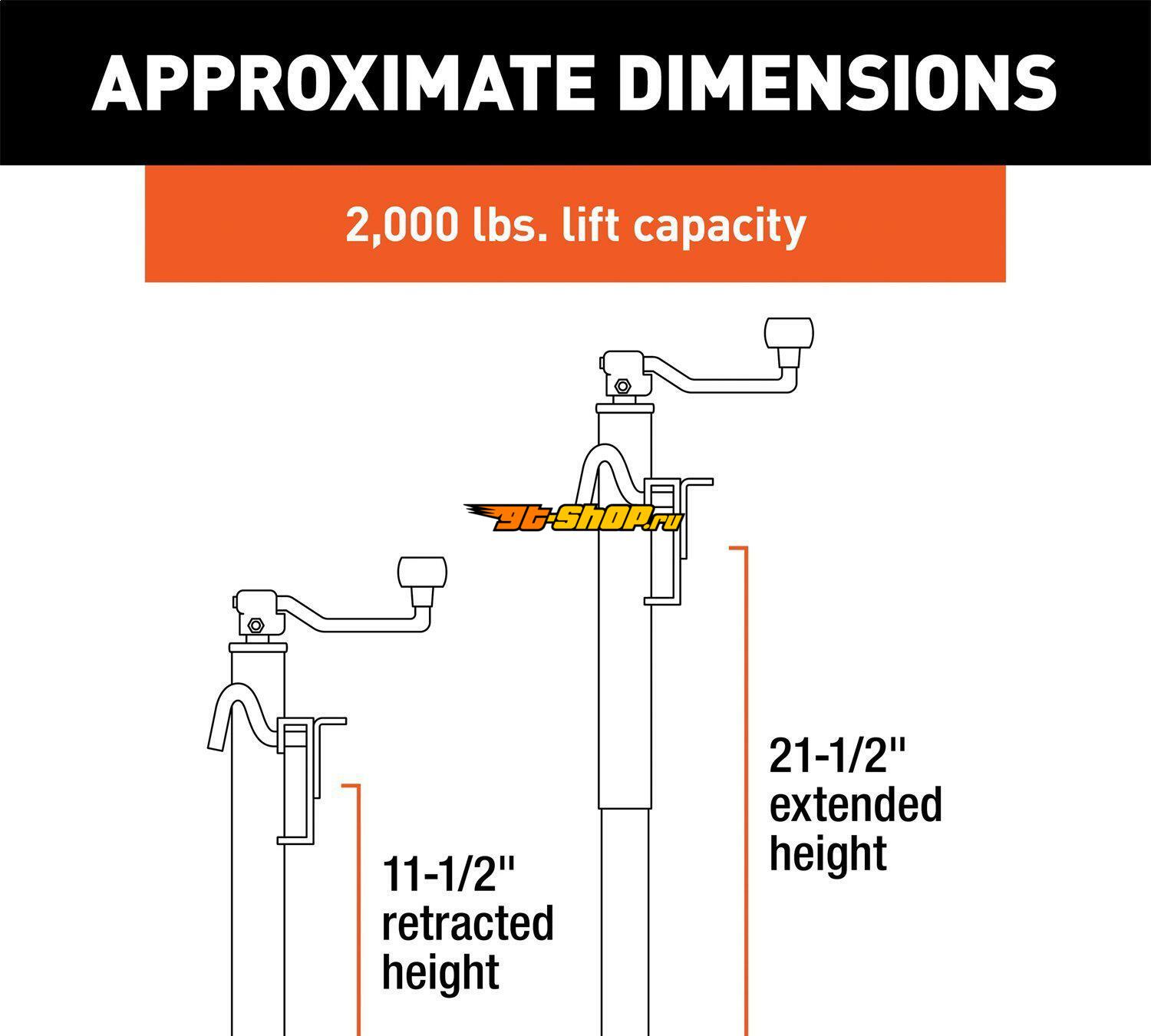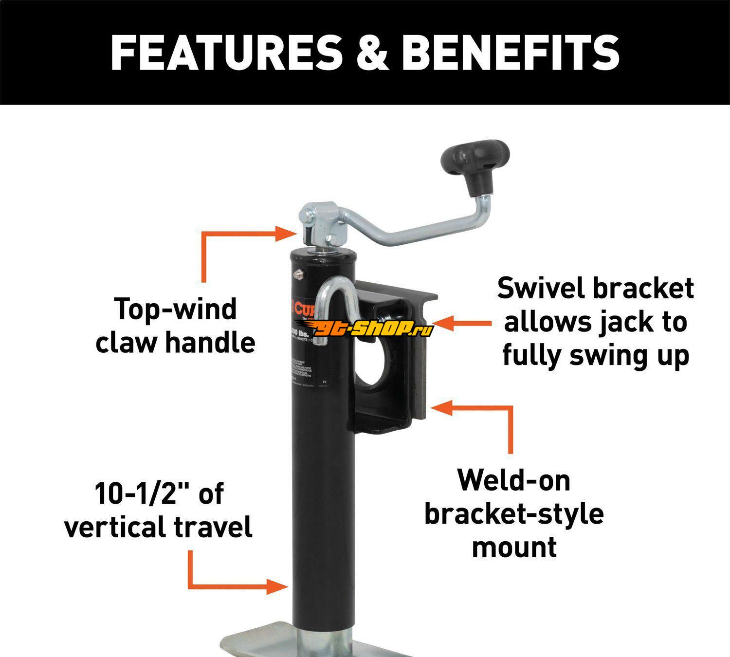 Curt Bracket-Mount Swivel Jack w/Top Handle (2000lbs 10in Travel Packaged)