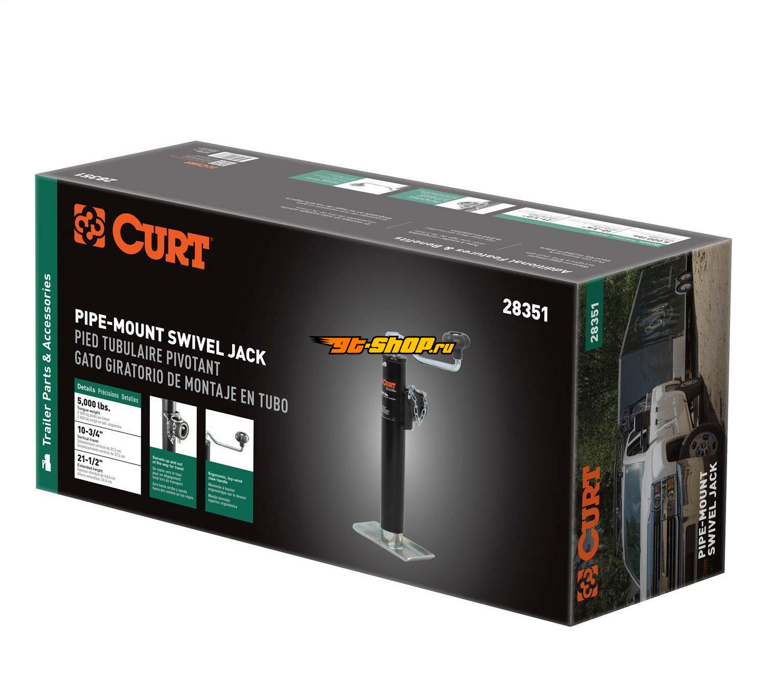 Curt Pipe-Mount Swivel Jack w/Top Handle (5000lbs 10in Travel Packaged)