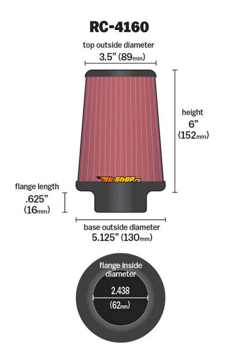 K&N Universal Chrome Filter 2 7/16 inch FLG / 5 1/8 inch Bottom / 3 1/2 inch Top / 6 inch Height