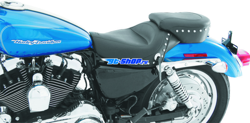 ОписаниеMustang 04-21 Harley Sportster 3.3 GAL Standard Touring Solo Seat w/Studs - Black