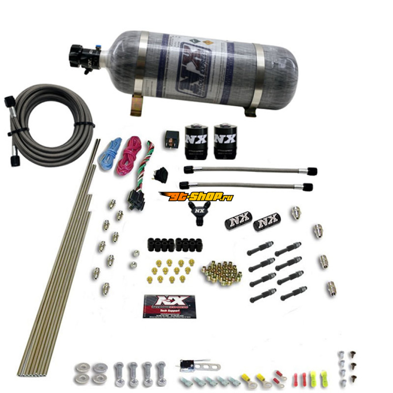 ОписаниеNitrous Express 8 Cyl Dry Direct Port 2 Solenoids Nitrous Kit (200-600HP) w/Composite Bottle