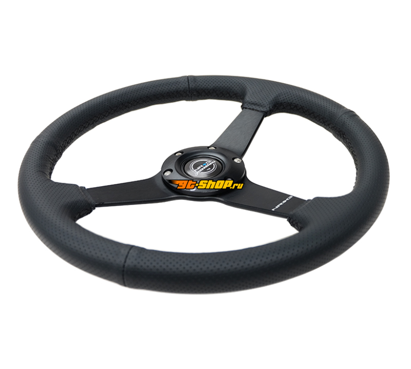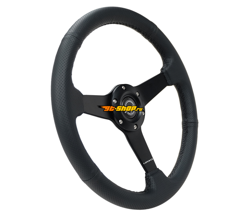 ОписаниеNRG Sport Steering Wheel (350mm / 1.5in Deep) Black Leather Black Stitch w/Matte Black Solid Spokes