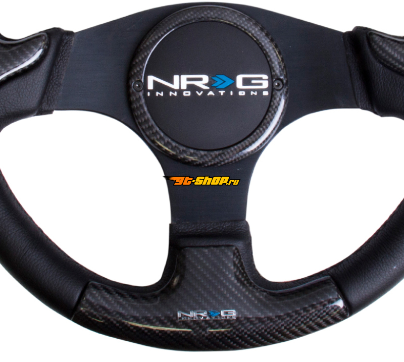 ОписаниеNRG Carbon Fiber Steering Wheel (350mm) Blk Frame Blk Stitching w/Rubber Cover Horn Button