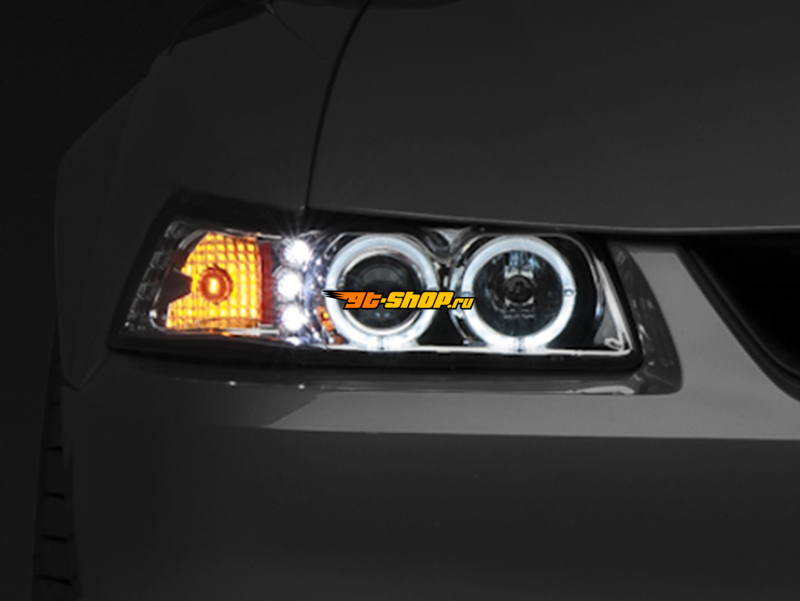 ОписаниеRaxiom 99-04 Ford Mustang Dual LED Halo Projector Headlights- Chrome Housing (Clear Lens)
