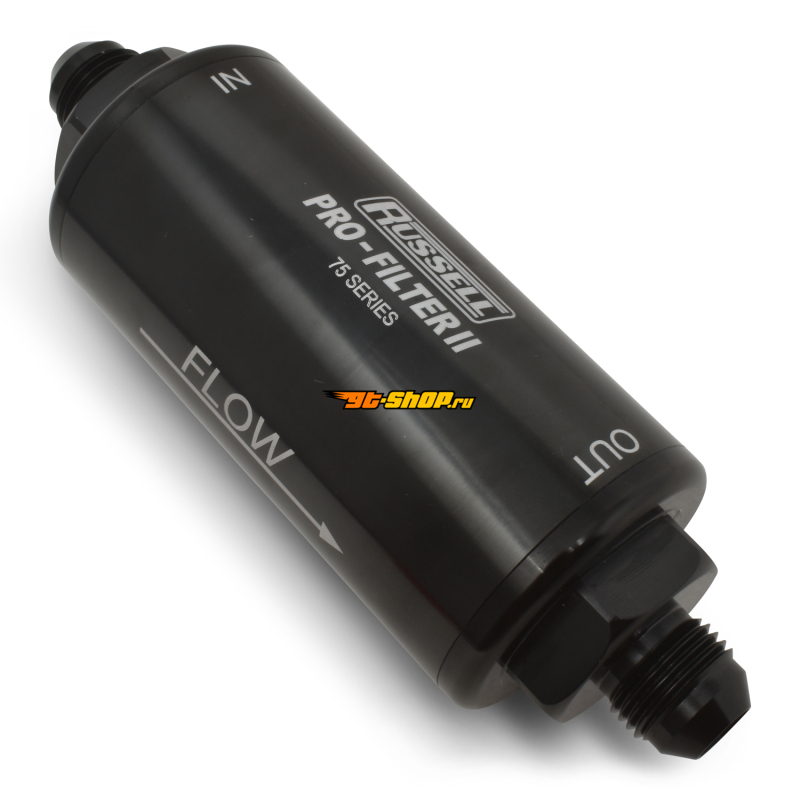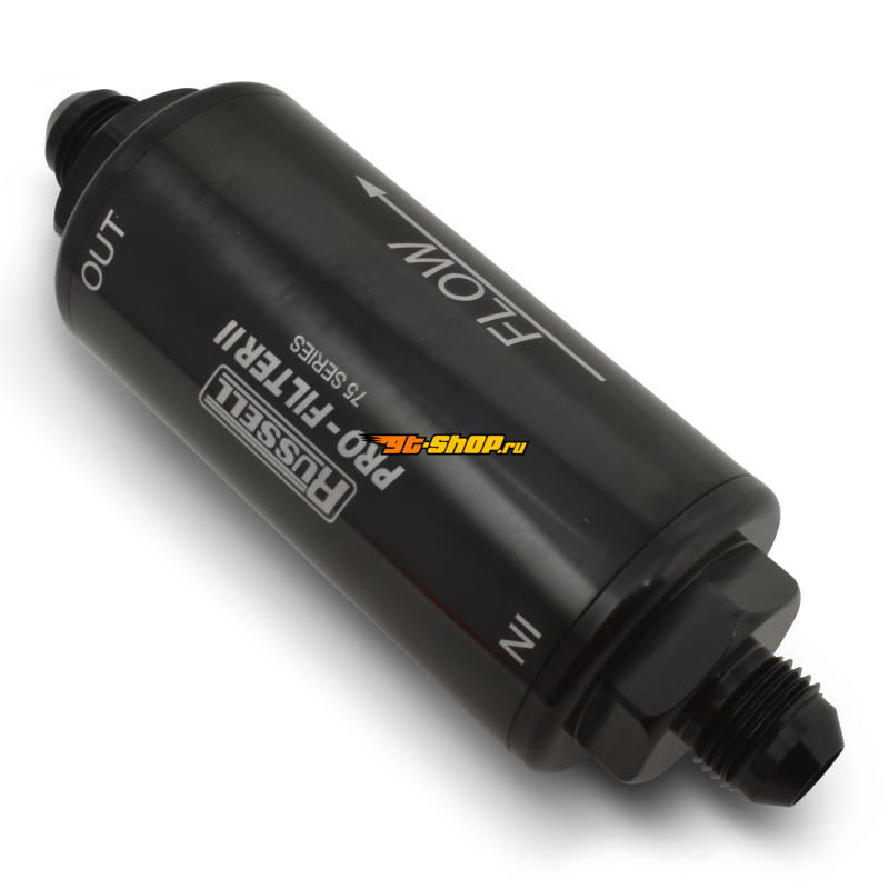 ОписаниеRussell Performance Profilter Fuel Filter 6.25in Long 10 Micron -6AN Inlet -10AN Outlet - Black