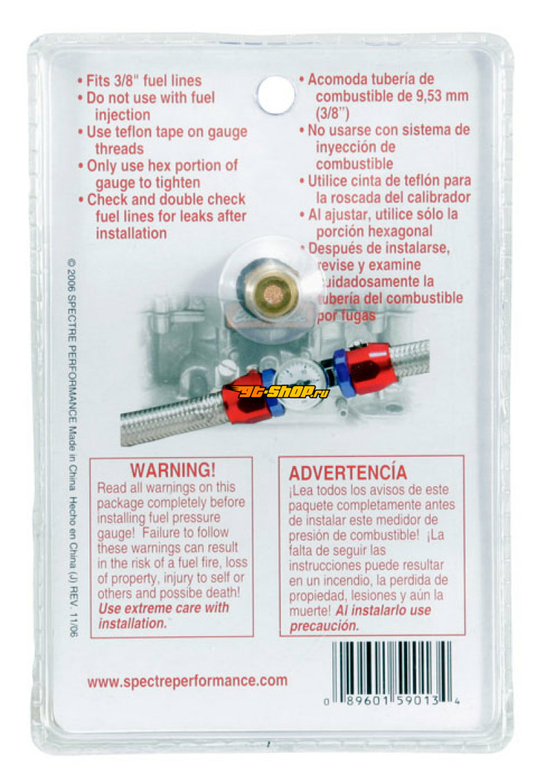 Оригинал. SPECTRE 59013, Spectre Fuel Pressure Gauge 0-15psi, От 2720 Руб.