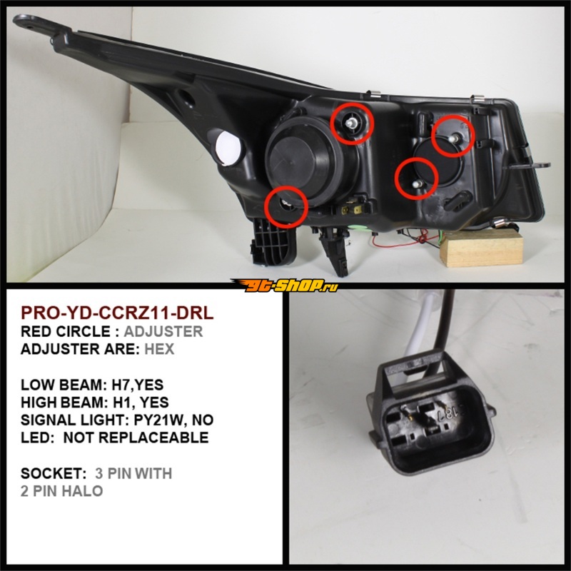 ОписаниеSpyder Chevy Cruze 11-14 Projector Headlights LED Halo -DRL Blk High H1 Low H7 PRO-YD-CCRZ11-DRL-BK