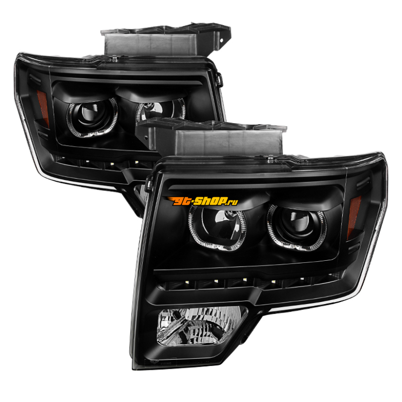 Xtune Ford F150 09-14 Projector Headlights Halogen Model Only LED Halo Black PRO-JH-FF15009-CFB-BK