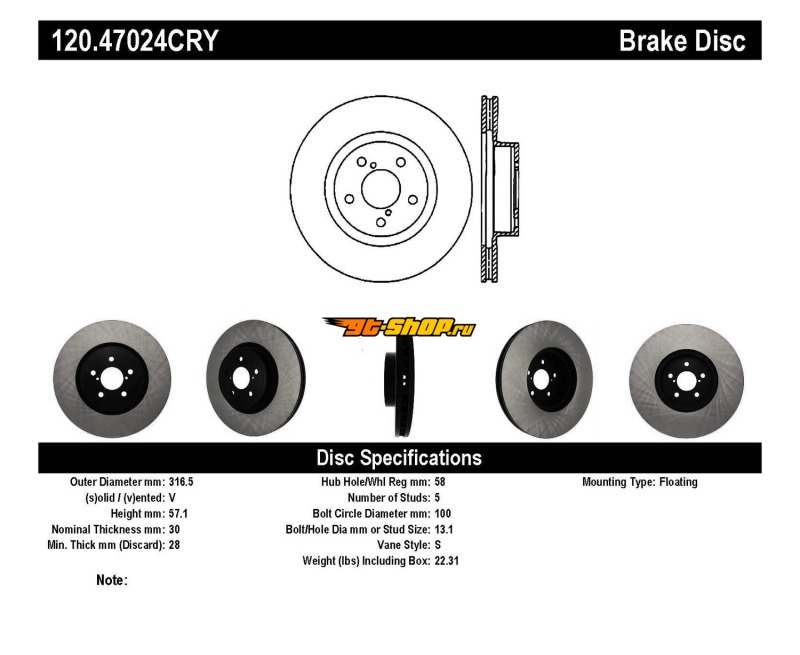 ОписаниеStoptech 05-08 LGT Front CRYO-STOP Rotor