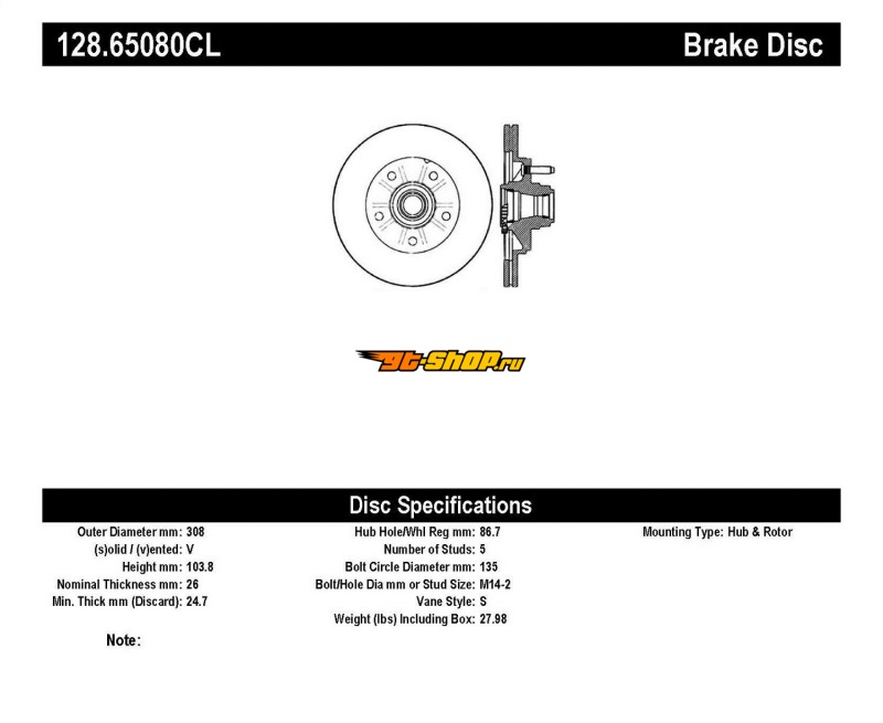 STOPTECH 12865080CL