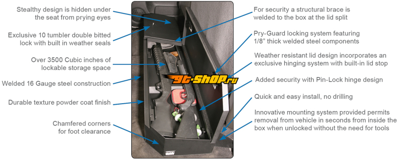 ОписаниеTuffy Chevrolet Silverado & Gmc Sierra Underseat Lockbox Full Length W/ Keyed Lock For